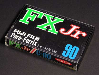 富士フイルムのLHタイプのカセットで、「FX」の「普及タイプ」として発売された。 磁性体には「FX」と同様「ピュア・フェリックス」が採用され、見た目も「FX」と似ているために違いが分かりにくい製品であるが、MOL(最大無歪出力)はC-60の場合+2dBと「FX」の+4dBより低く(C-90の場合は+1dB対+2dB)、その他、磁気特性などのスペックも「FX」より若干落としてあるなど、性能的には名前のとおり「FX」の下位機種という設定が明確となっていた。 「FX」は「FM」の後継として1974年に発売されたが、他社のLHタイプ(C-60で550円)より高価格(同700円)だったため、他社並みの価格のLHタイプ製品を別途投入する必要に迫られたのかもしれない。 発売は前後しているが、価格的に見ると「FM」の後継品にあたるのは本製品であり、「FX」はそれより上の新規グレードの製品だったことになる。 「すぐれたコスト・パフォーマンスにより、気軽に音楽録音が楽しめます。しっかりした音像はヴォーカルに最適です。」(発売当時の広告から) パッケージや本体のデザインは、「FX」のイメージそのままで「Jr」の文字が加わっただけという感じである。 本製品の発売と同時に、「FX」よりさらに上位グレードの「FX Duo」も発売され、ハイグレードのノーマルタイプ3機種を揃える「FXシリーズ」が構成されることとなった。 |