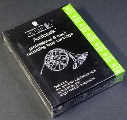 米「Capitol Industries」社の8トラックカートリッジテープである。 同社は、アメリカの大手レコードレーベルである「Capitol」(キャピトルレコード)の親会社のようで、本製品はそのオーディオ部門のものらしいが、ロゴが「capitol 2」となっている。 「Capitol」ではあるが、ミュージックテープではなく80分録音用のブランクテープである。 パッケージは全面黒地で、表面の中央に大きく描かれた金管楽器のホルンとその上下のロゴや説明文字の配置が、クラシックのレコードジャケットを思わせるような何とも渋い雰囲気にデザインされている。 また、裏面に記載されている説明書きも、レコードのライナーノーツのような三段組みのレイアウトになっており、いかにもレコード会社の製品と思わせるデザインである。 なお、使用しているテープは、レコード会社がミュージックテープ用に採用しているプロ用のものらしい。 |