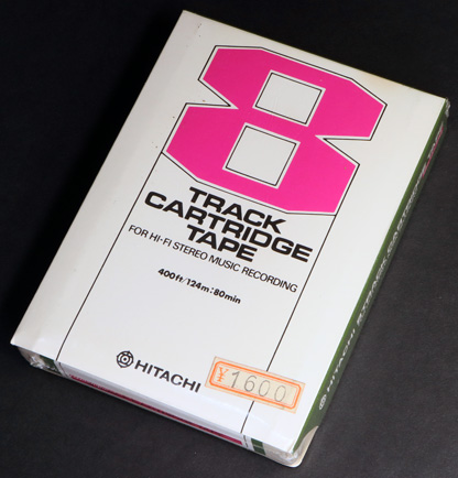 当時の日立家電販賣株式会社が「HITACHI」ブランドで販売した録音用8トラックカートリッジ生テープである。 画像の製品のテープの長さは400フィート(約124m)で、80分(20分×4プログラム)の録音ができる8トラックテープとしては長尺物の製品である。 パッケージは紙製で、表面にはデフォルメされた大きな「8」の字がカラーでデザインされている。 そのカラーはテープの長さ別に異なっており、8T-200(40分用)はオレンジ、8T-300(60分用)はブルー、そして画像の8T-400はピンクとなっている。 HITACHIのテープは製造元がmaxellだったことから、本製品はmaxell「8T」の日立版と思われる。 |