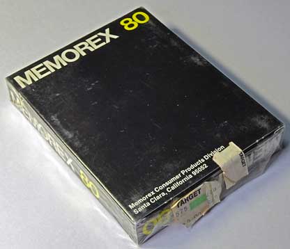 米MEMOREX社の録音用8トラックカートリッジテープである。 同社はもともとコンピューターの周辺機器メーカーであるが、データストレージ用の磁気テープ製造技術を使い、「プレミアムテープ」と呼ばれる高級オーディオテープを製造し日本でも販売していた。 本製品は米国内向けの製品で、トータルで80分の録音ができる8トラックテープである。 パッケージデザインは同社のオーディオカセットやオープンリールテープと同様に、全面がブラックで上部に「MEMOREX」のロゴと製品種別の「80」、そして下端に小文字で最小限の情報が記載されているだけという極めてシンプルなものとなっている。 |