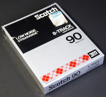 米3m社がScotchブランドで販売した録音用8トラックカートリッジテープである。 同社の本拠があるアメリカ国内向けの製品である。 パッケージデザインは、当時の3m製のオープンリールテープと同様のイメージのものとなっている。 また、カートリッジをパッケージから簡単に出し入れできるように、パッケージの上半分を切り取って使えるよう中央部にミシン目が入っている。 |