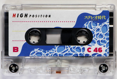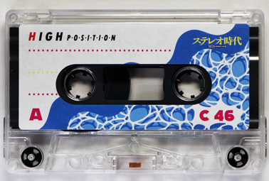 カセットハーフも透明だが、内部のスリップシートはブラックで、クッション性を持たせるための折り目が付いている。 また、ハブやローラーにもブラックの部品が使われている。 パッドは大きめで、その裏には遮磁板が省略されずにちゃんと装着されている。 ラベルのデザインはA、B面共通で、80年代テイスト全開のもの。永井博氏デザインの雑誌の表紙にイメージを合わせた感じである。 |