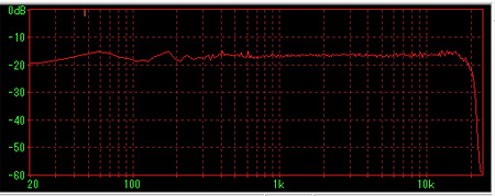 中域にちょっと乱れがあるものの高音域はフラットである。15kHzあたりから下がっていくが、20kHzまで一応±3dBの範囲には収まっている感じである。