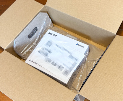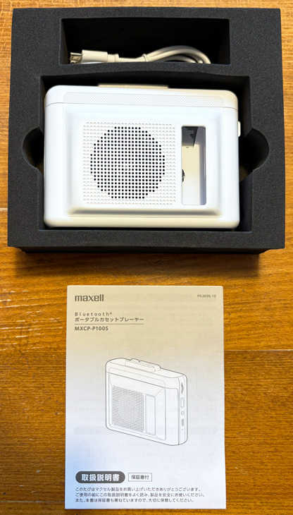 さらに、ニュースリリースによると、 「電響社は、長年愛されるマクセルブランドのカセットテープ関連の製品を開発・販売することで、新たにカセットテープに興味を持ち始めた方々にその魅力と価値を伝えながら、カセットテープ文化のさらなる発展に貢献してまいります。」 なんと素晴らしい!!! 今回発売されたプレーヤーは「カセットテープ文化のさらなる発展」のために「maxell」ブランドのコンシューマー向け製品の一つとして、電響社が企画開発して発売したものなのだ。 カセットを愛する博物館の館長として、これは感極まって泣けるほど嬉しい話である。 今回リポートするのは「MXCP-P100S」という型番の製品で、今年(2025年)8月20日に発売されたものである。 実は、先の5月に「MXCP-P100」という製品が既に発売されており、「P100S」はmaxellのカセットプレーヤーとしては第2弾目の製品となる。 「P100」との違いはスピーカーが付いたことで、これによりヘッドホンをつながなくても音が聴けるため、カセットのちょい聴きをしたり、多人数でカセットを聴くということができるようなり、便利に使えるようになった。 「P100」の方は発売後に一時売り切れになるほどの人気ぶりで、館長はタイミング悪く入手できなかったのだが、「P100S」が発売されたことを聞きつけて早速購入したという次第である。 前置きが長くなったが、それではリポートを始めることにしよう。 まずは開封場面から(笑)。 |