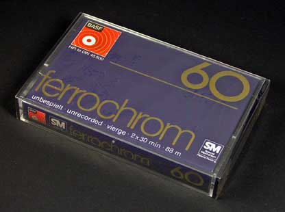 西ドイツのメーカーであるBASFが発売したフェリクロムテープである。 パッケージの基本的なデザインは当時の「LH」や「SCR」と共通であるが、色使いが異なっており、製品カラーの紺色をベースに金色の文字が使われ、高級感を出している。 また、カセット本体には、MEMOREXの製品のように中央部分に大きく透明な部材が使われており、内部にあるリールや「SMメカニズム」の爪が動く様子も見ることができるという、当時としては高級感のある先進的な仕様となっている。 フェリクロムテープとしては、1973年に発売されたSONYの「Duad」からかなり遅れての発売で、定価はC-60で1,000円と、「Duad」の900円に比べると高めの設定がされていた。 |