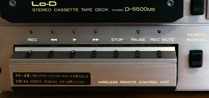 80年代後半以降はあらゆる家電で当たり前となったワイヤレスリモコンだが、本製品が発売された79年当時はテレビにもほとんど搭載されておらず、リモコン自体が珍しいものだった。 一部のカセットデッキではリモコン操作が可能だったが、ほとんどが有線式で、しかも別売のオプション扱いだった。 標準でワイヤレスリモコン機能が内蔵されたカセットデッキは、本製品の前身である「D-5500DD」が初めてではなかっただろうか。さすがに超高級機と思わせる画期的な機能だった。 さらに本製品のリモコンのおもしろいところは、リモコンを使わないときには本体に収納して、本体の操作ボタンとして使う「着脱式」になっているところだ。 |