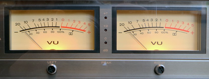大型で視認性の良いプロ機タイプ。目盛りは-20〜+5VU。