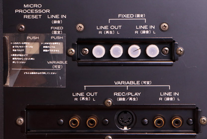本製品はラインとマイクの2つの入力ボリュームがあるので、それぞれのレベル調整を独立して行うことができる。もちろん、マイクミキシングも可能である。 ボリュームのノブは大きく操作性が良い。 当時はまだ使われていた「DINケーブル」でアンプなどと接続している場合は、マイク入力のボリュームで調整を行う。 |