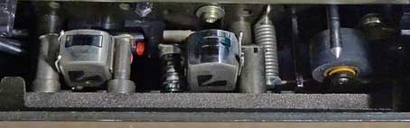 * 中央が録再用センダストヘッドで左が消去用ヘッド *
