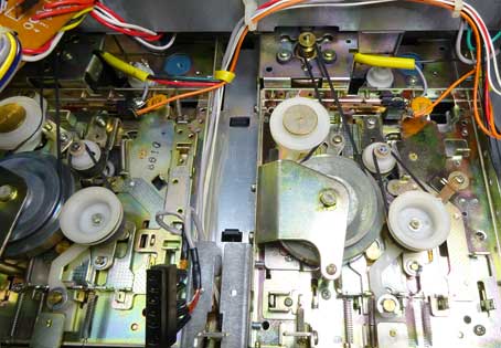 * デッキ内部:各デッキの左上にあるのがモーターで、両方ほとんど同じメカである *