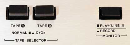 しかし、前述のように再生アンプが1系統しかないため再生音を同時に聴くことはできず、録音も消去ヘッドと録音回路が付いているTAPE2だけでしか行えない。 |