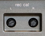 すると、FLメーターに400Hzの基準信号のレベルが表示されるので、左右とも0dBになるように録音レベルボリュームで調整する。 再生ボタンを押すと録音がスタートするので、モニタースイッチを押してテープモニターの状態にする。(LEDが緑色に変わる。) この状態でレベルメーターの表示が左右とも0dBになるように「rec cal」のトリマーをドライバーなどで回して調整する。 |