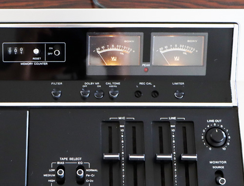 良い! いや素晴らしい! 「F&Fの3ヘッド構成」+「デュアルキャプスタン」の威力を見せつけるような良音である。 全体的には、ハッキリくっきり明るいソニーサウンドだと言える。 それでも、ノーマルテープはしっとり目の音、デュアドはメリハリのある音、ハイポジではソニーサウンド炸裂のパワフルな音、という風にテープの種類によるキャラクターの違いも演じ分けてくれる。 じっくり聴いていると、デュアドの音が一番バランスが良いように感じてくる。これは、高いテープを買わせるため、そう聴こえるようにSONYの罠が仕組まれているせいかもしれない(笑)。 ダイレクトドライブではない1モーターのデッキだが、音に揺るぎはなく、どっしりと安定している。 日本にカセットテープが登場してまだ10年も経っていなかった時期に、既にこれほどの音を出すカセットデッキが存在していたとは実に驚くべきことである。 そして、さらに驚くべきことは、それから約半世紀経った今でもこれだけの音を聴かせてくれるということだろう。これには、ほとんど摩耗していないF&Fヘッドの効果も大きいのではないかと思う。 |
