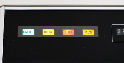 (左から「LIMITER」「DOLBY」「RECORD」「PAUSE」)