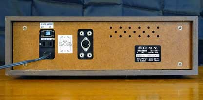 3つのうち、最も左にある「4→1」のボタンは「4番目のプログラムから1番目へ戻る」時にイジェクトする、つまり、4番目が終わった時に自動ストップさせたい場合に予め押しておくボタンである。 その右の「EACH」は、再生(録音)しているプログラムの終了時にイジェクトさせる場合に押しておくもので、「MANUAL」は、押すと直ちにイジェクトされるボタンである。 なお、「4→1」及び「EACH」のどちらも押されていない状態で再生又は録音を始めると、「MANUAL」ボタンを押さない限り延々と再生や録音を続けることになる。 さて、パネル面の説明が長くなったが、本製品全体を見てみると、かなりコンパクトにできている。 8トラより小さいテープを使うカセットデッキと比較しても小さいくらいである。 |