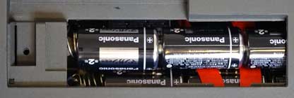 本製品は、この時代のデッキらしく、また、アウトドアでの生録に対応しているということもあってマイク入力が付いており、ライン入力とのミキシングも可能になっている。 また、ドルビーNRを使う場合はドルビースイッチを押し下げる。すると、左右メーターの間にある「DOLBY」の青い表示が点灯する。 録音レベル調整が済んだら、録音をスタートさせる。 既に押し下げてある「REC」キーが戻らないように押さえながら、送りキーを押し込む。 なお、2ヘッドデッキなので、録音同時再生モニターはできない。 ところで、先にも述べたとおり本製品は3電源方式で、ACアダプター(カーバッテリー)や乾電池でも動作させることができる。 当然、電源のない屋外での使用を想定しているのだが、本体重量が5s(電池を入れると5.5sくらい)もあり、キャリングハンドルのようなものも付いていないので、ちょいと片手で持ち歩くという使い方は難しい。 一応キャリングケースも別売されていたようだが、これだけ重くて大きいと、カセットデンスケのように肩に掛ながら使うという感じではない。 もっぱら、電源のない屋外の録音現場に据え置いて使うということを想定しているのかもしれない。 電池で使う場合は、本体の裏側にあるバッテリーケースに単二の乾電池を9本入れる。 |