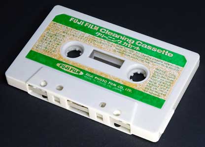 富士フイルムのヘッドクリーニング用のカセットである。 テープは白い半透明のもので、クリーニング機能の付いたリーダーテープと同様のものが使われている。 |