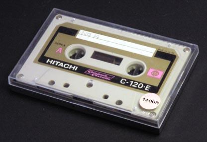 日立の初期のLNタイプのカセットである。 従来は1,300円だったプラケース入りC-120を特殊なエコノミータイプのプラケースに変更し、価格を200円値下げしたもので、「E」は「Economy」の頭文字のようである。 本製品のプラケースは、透明なフタが付いたいわゆる菓子箱型をしており、カセットテープのプラスチックケースの形としては珍しいものである。 値下げされたとはいえ、C-120が1,100円もした(もちろん1個の値段)というのは、その後のカセットの価格を思うと感慨深い。 |