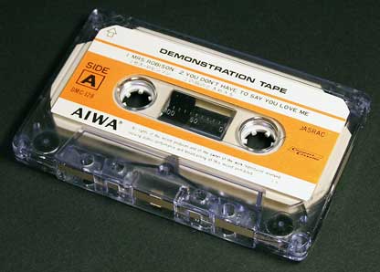 アイワ製のカセットテレコに付属していたと思われるデモテープであるが、詳細は不明。 本体のカセットは1970年代初め頃のSONY製品と酷似している。 A面に2曲の音楽が入っており、B面はブランクとなっている。 |