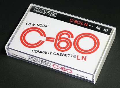 当時のスーパー最大手「ダイエー」が自社ブランドで販売したLNタイプのカセットである。 家電のプライベートブランドだった「BUBU」を廃止した後の商品と思われる。 パッケージのデザインは「BUBU」カセットのイメージを踏襲しているが、「BUBU」の代わりに録音時間が大書きされている。 また、カセット本体の方は「BUBU」とほぼ同じオレンジ色基調のラベルが使われており、「BUBU」の代わりに「DAI'EI」と表示されている。 パッケージ表面には「一般用」と表示され、裏面には「LNテープは、語学、会議、ラジオ、テレビのドラマ等の録音に適当です。」と、かなり具体的に用途が記載されている。 これらは、当時並んで売られていた「LH」や「ELH」との違いが分かるように記載されていたものと思われる。売り場に店員が少ないスーパーマーケット専用の商品らしいところかもしれない。 |