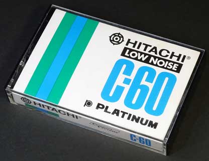 プラチナ萬年筆株式会社が販売したLNタイプのカセットで、「プラチナカセットテープ」の後継機種である。 本製品も日立との共同開発だったようで、ラベルには「プラチナ萬年筆」と「日立製作所」のロゴが併記されている。 OEM製品の製造元が製品に表示されること自体あまりないのだが、本製品の場合は、製造元の「HITACHI」の方が「PLATINUM」より大きいくらいに目立って表示されており、さながら日立カセットのプラチナバージョンといった風情である。 当然ながら、当時の日立「LOW NOISE」のOEM版ということになるだろう。 パッケージや本体ラベルのデザインも、3本のバーが直線か円弧かの違いはあるものの、雰囲気的には日立の「LOW NOISE」にそっくりである。 特に、パッケージ裏面の価格表記やマルチリンガル表示は日立製品の初期版とほぼ同じである。 |
