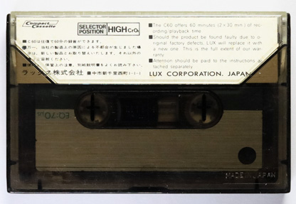 ケースはブラウンのスモーク調で、中のカセットのインデックスが見えるようになっている。