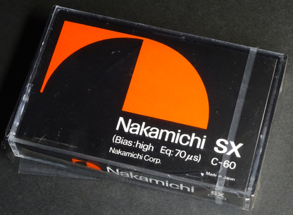 高級カセットデッキのメーカーであったナカミチ(旧中道研究所)が販売したクロムポジション用テープである。 当時のナカミチは自社デッキの性能を引き出すための推奨テープをNakamichiブランドで販売しており、デッキのセレクター表示も製品名であるEX(ノーマル・TypeT)、SX(ハイポジ・TypeU)、ZX(メタル・TypeW)が使われていた。 本製品は、TDKのハイポジカセット「SA」を選別した製品といわれている。 パッケージのデザインは、当時の同社カセットシリーズ共通のロゴマークが大きくデザインされたもので、製品の種類によってロゴ部分のカラーが異なっており、本製品には赤色が使われている。 また、販売時期等により、パッケージの表記が微妙に異なっている。 |