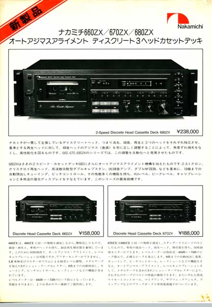 Nakamichi 680ZX の概要(当時の新製品ニュース) 上:表面、下:裏面 (クリックすると拡大表示されます。) |