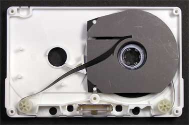 表面側のハーフを外した状態。 テープは右側のテイクアップリールのみに巻かれており、乱巻き防止のスリップシートも特殊なものが使われている。 |