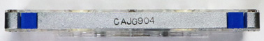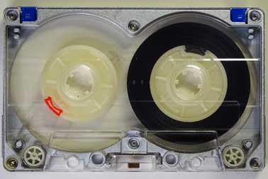 発売当時はメタル用のテープ種別検出孔の規格が定まっていなかったため、検出孔が全くない。(=ノーマルテープと同じ状態。) 青色は再録音防止用のタブの代わりとなるプラグ。 |