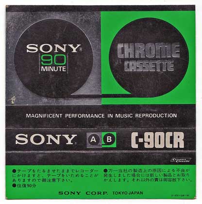 ソニーから発売されたクロームテープ。 銀と黒が基調のパッケージが格好良いと思いました。 確かに高音部の音は良いとは思いましたが、やはり価格面でクロームは買えなかったです。 |